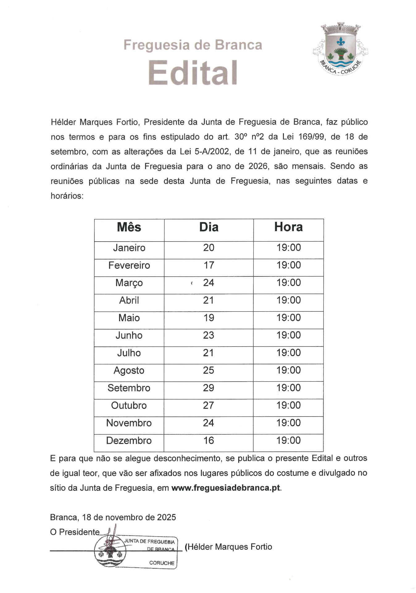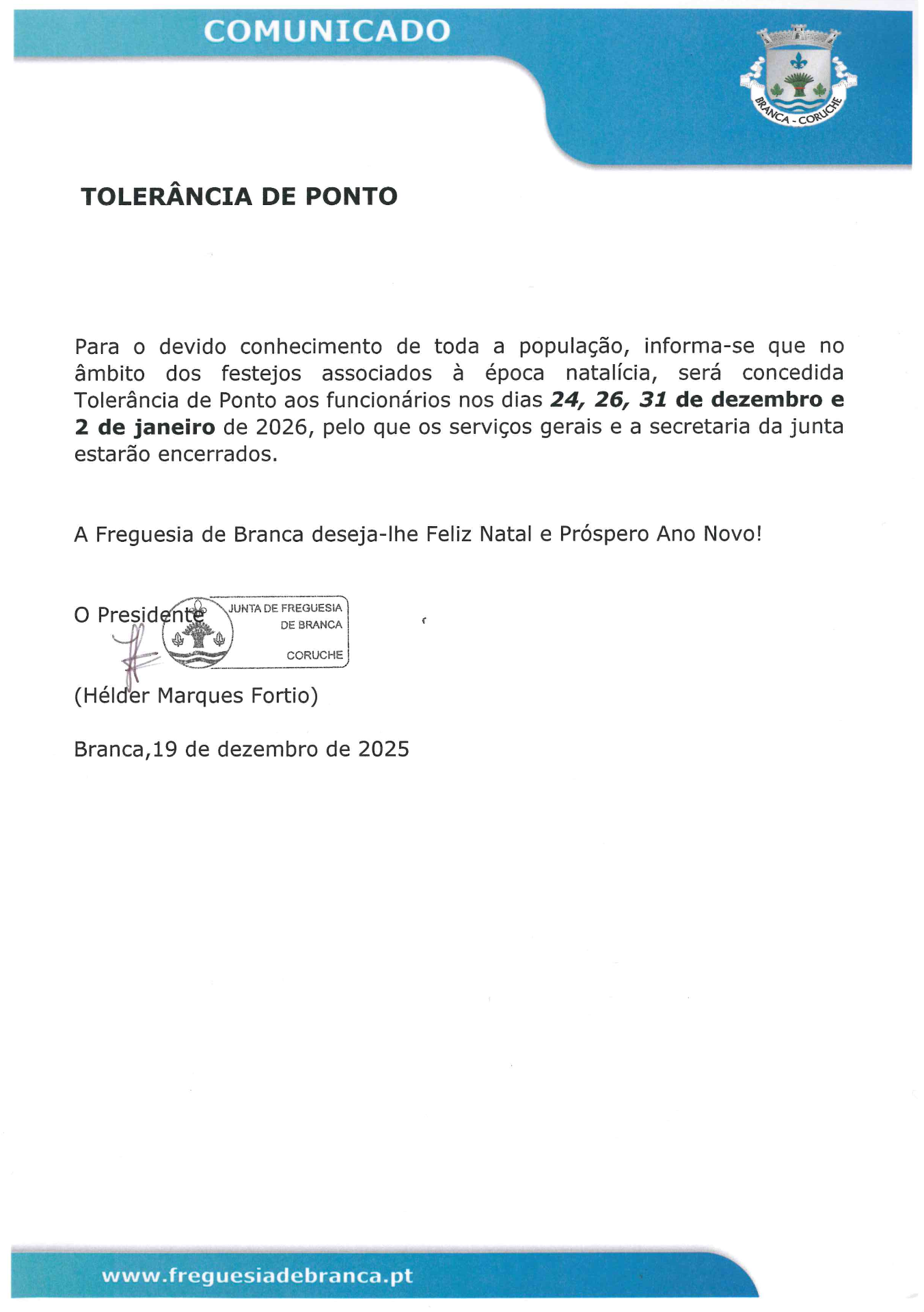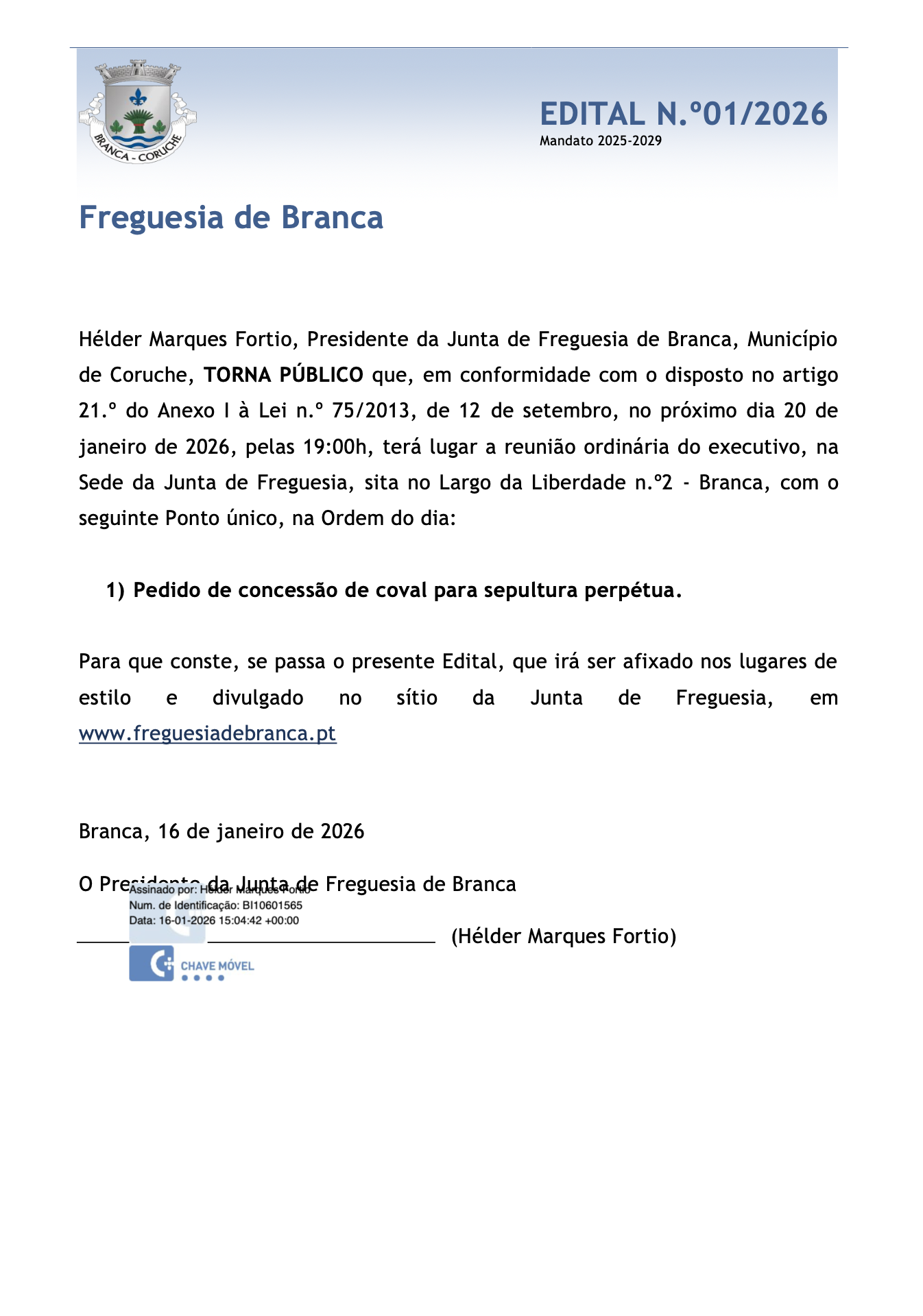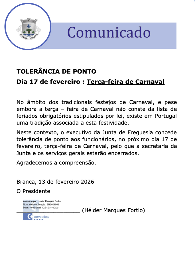 Bem-vindo(a) ao site da Junta de Freguesia de Branca