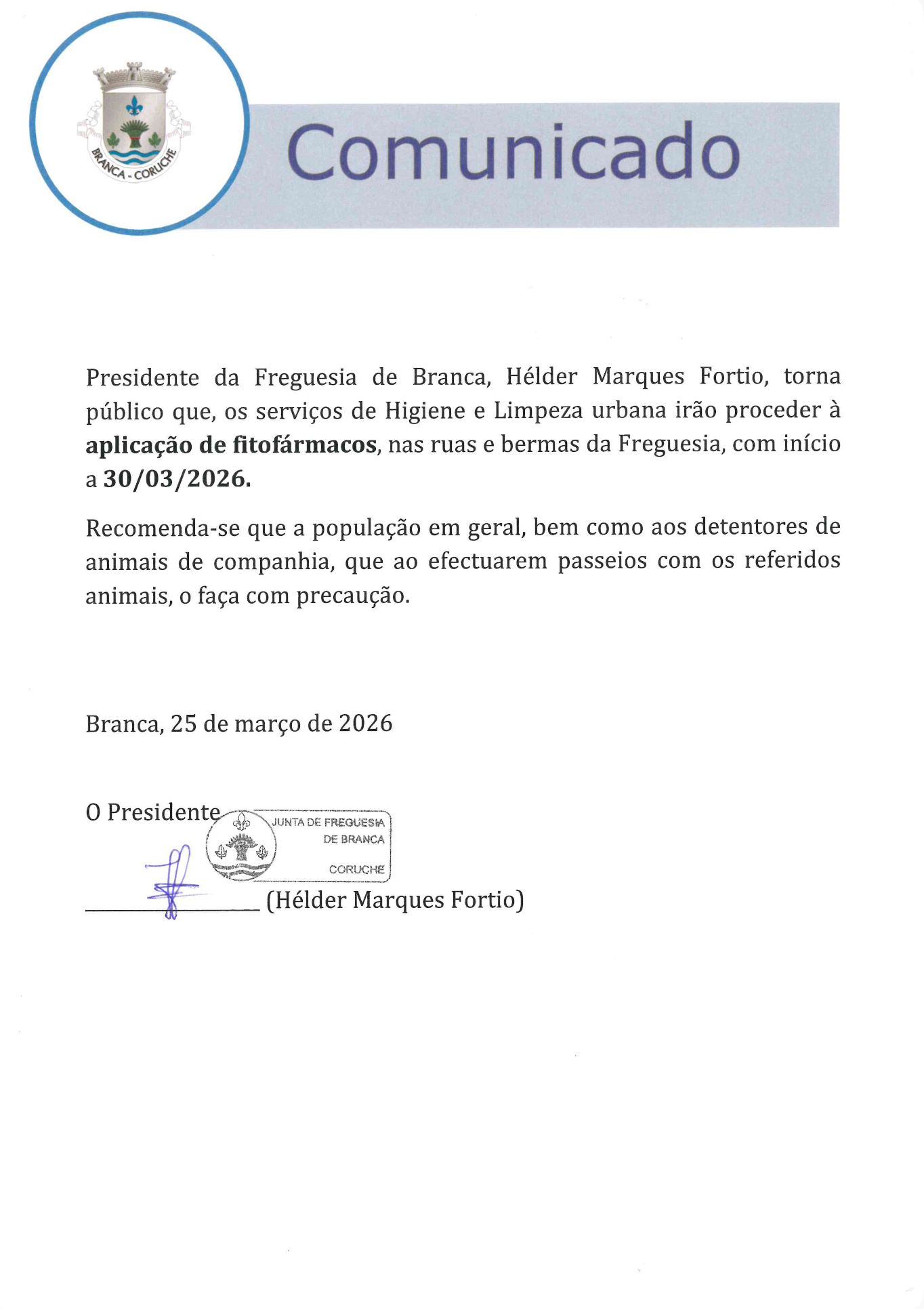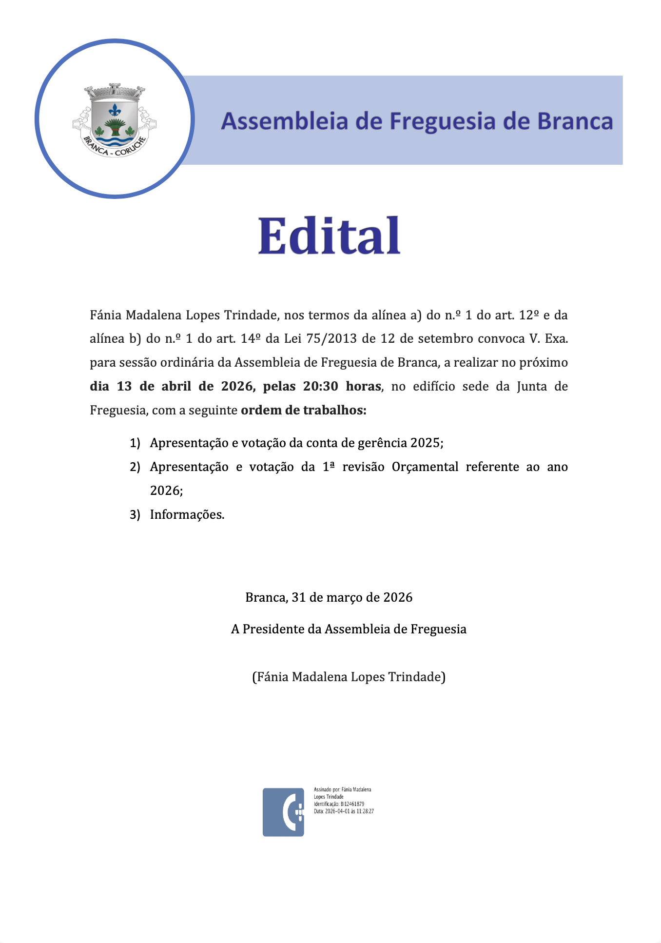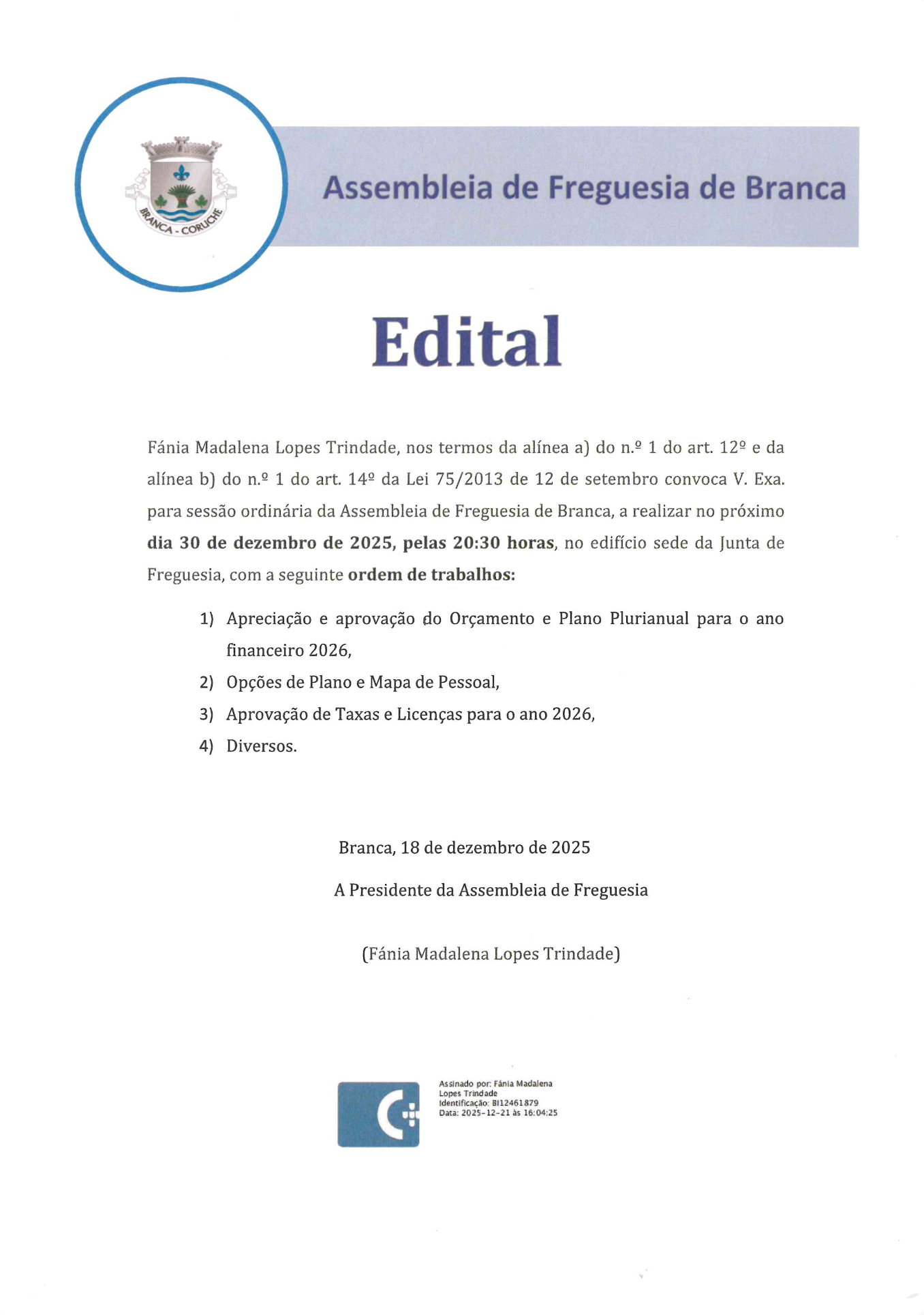 Bem-vindo(a) ao site da Junta de Freguesia de Branca