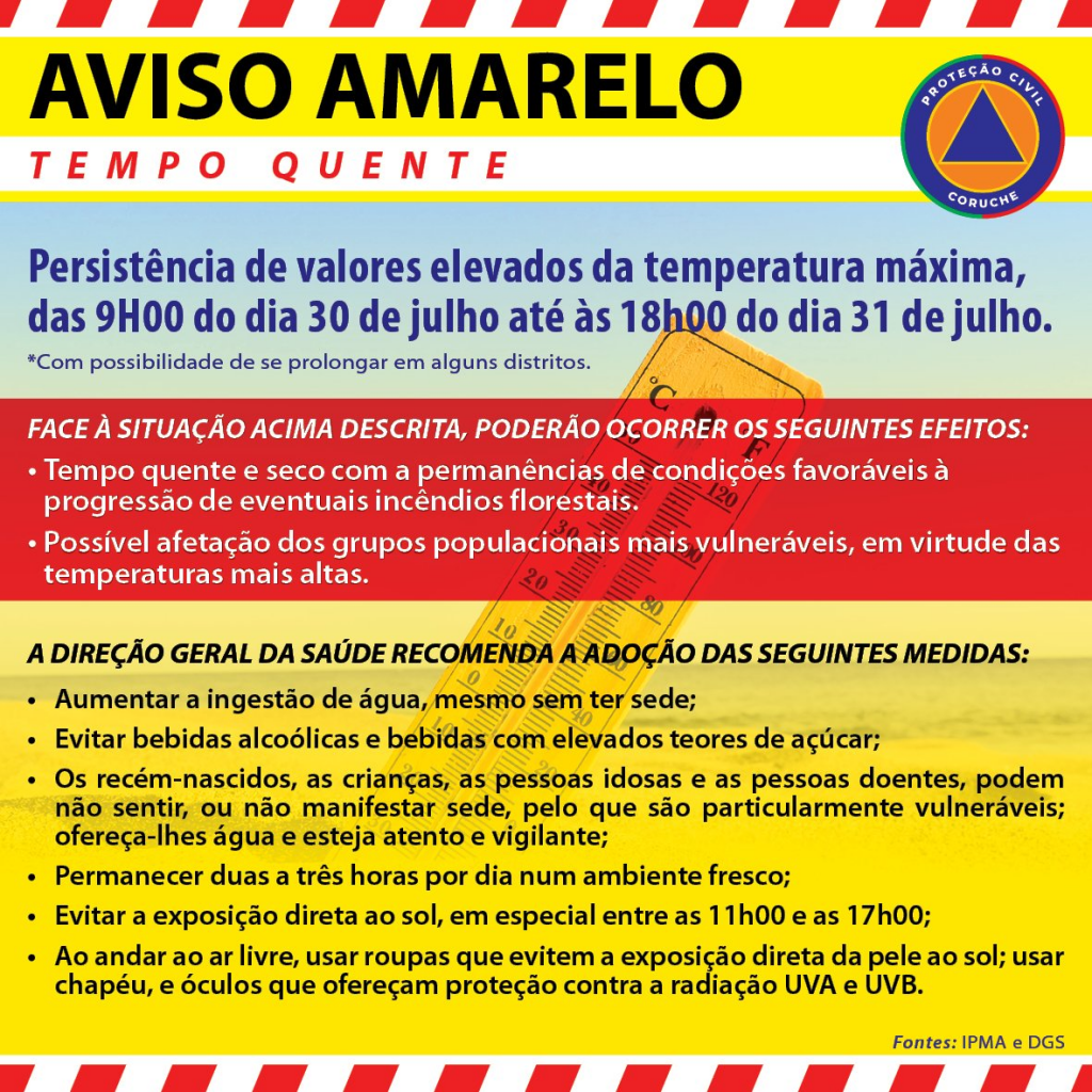 Aviso Amarelo - Persistência de Temperaturas Altas...