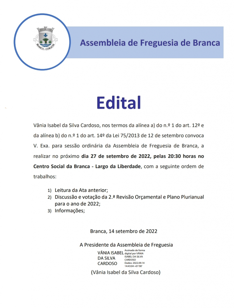 Edital AF - Sessão ordinária de 27...
