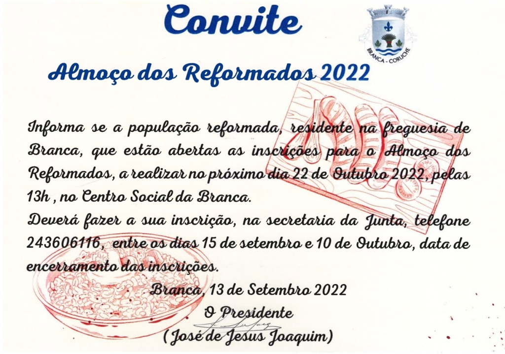 Convite - Almoço dos Reformados 2022
