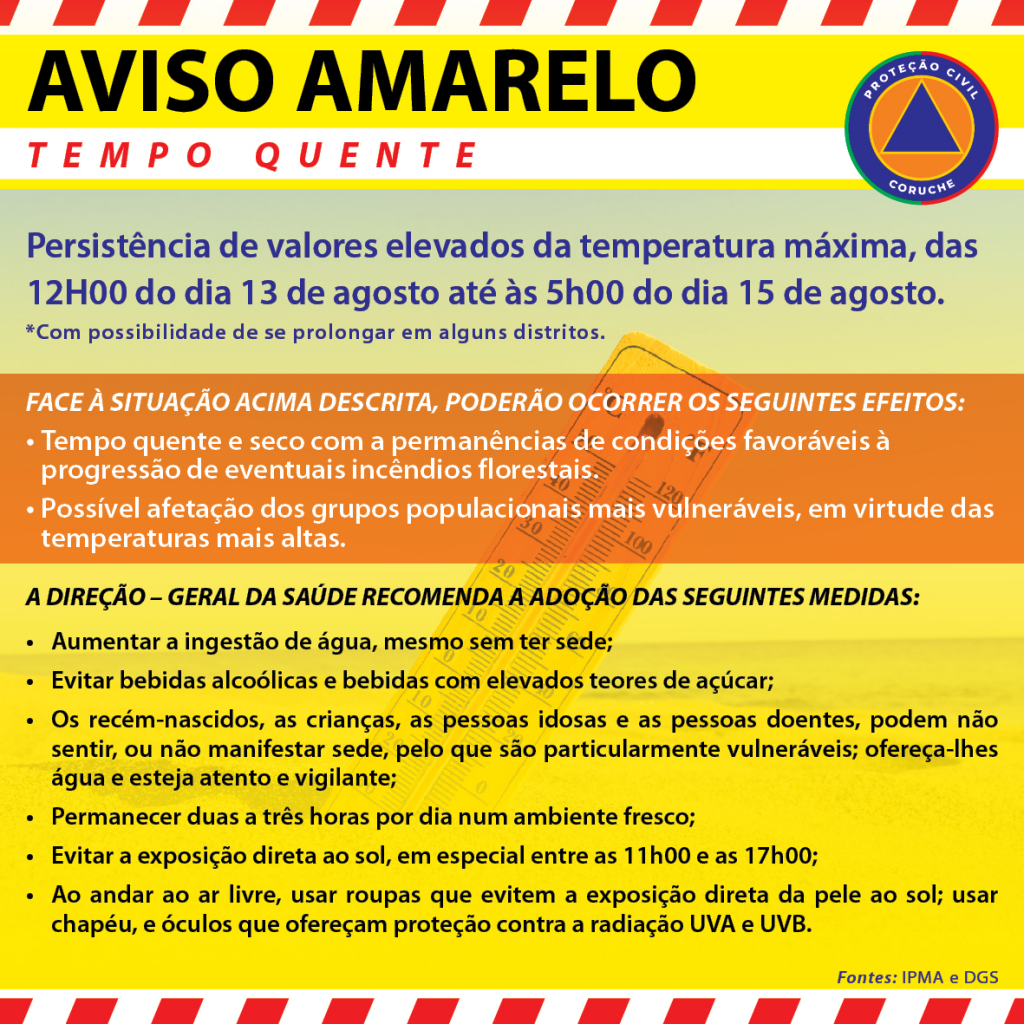 Aviso Amarelo - Persistência de temperaturas elevadas