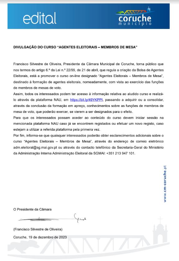 Divulgação do Curso "Agentes Eleitorais - Membros...