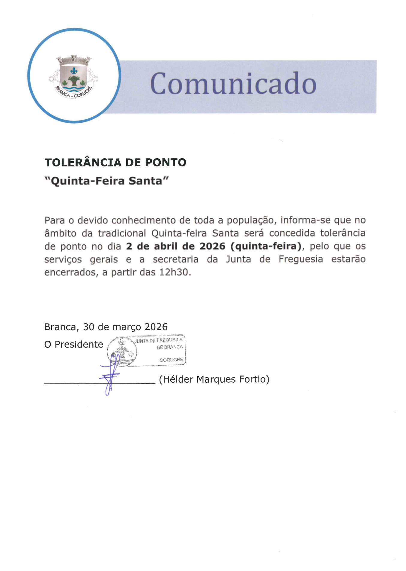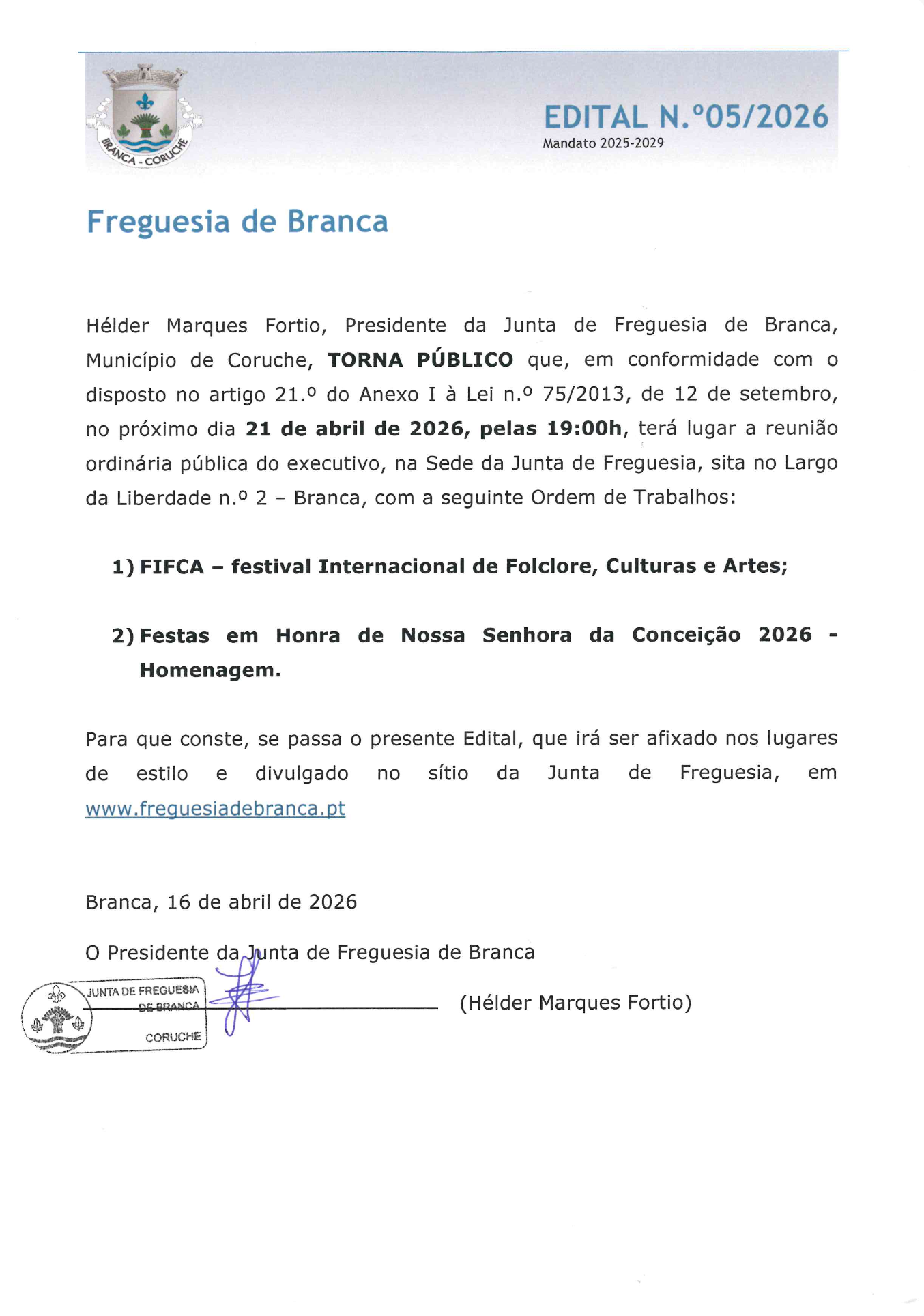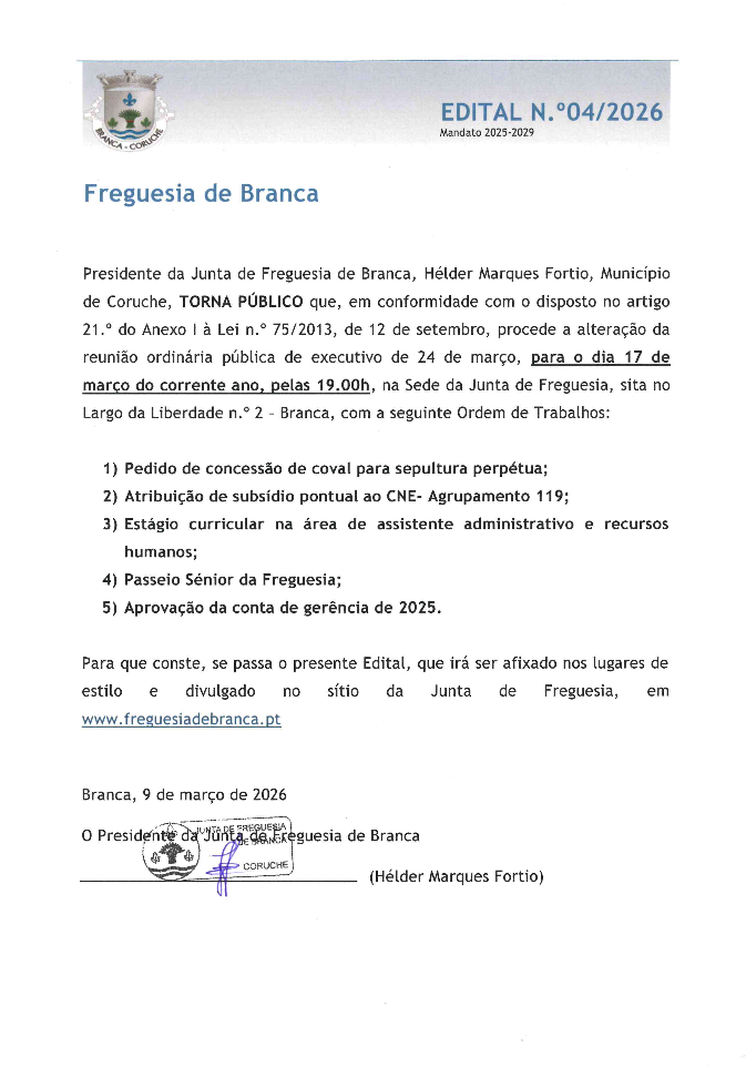 Bem-vindo(a) ao site da Junta de Freguesia de Branca
